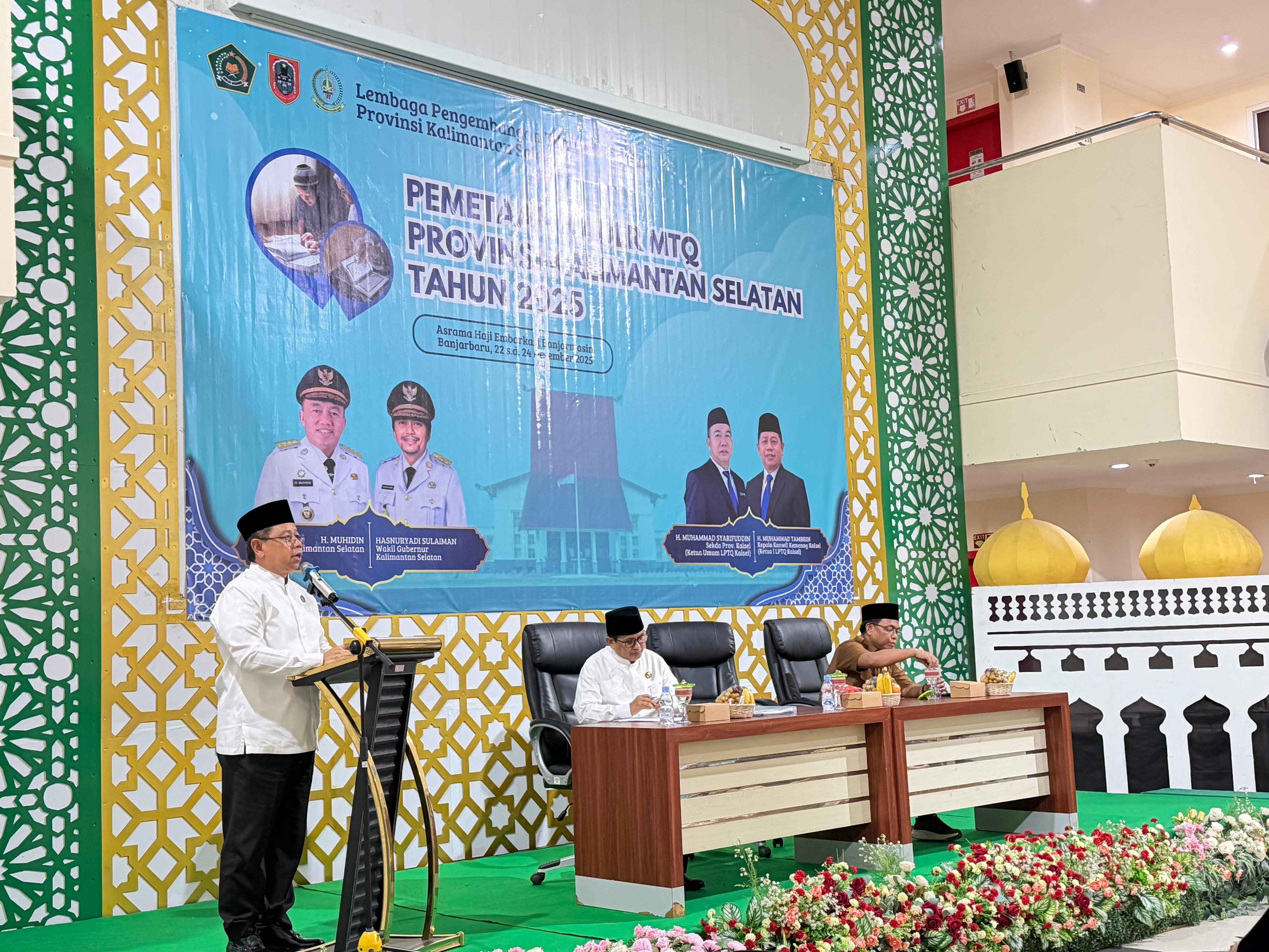 Kegiatan tersebut dibuka secara resmi oleh Kepala Kantor Wilayah (Kanwil) Kementerian Agama (Kemenag) Kalsel Dr. H. Muhammad Tambrin, M.M.Pd selaku Ketua I LPTQ Kalsel mewakili Sekda Kalsel H. Muhammad Syarifuddin, M.Pd selaku Ketua Umum LPTQ Kalsel. Dalam sambutan tertulisnya yang dibacakan Tambrin, ia menegaskan bahwa pemetaan kader MTQ merupakan langkah strategis dan fundamental dalam membangun sistem pembinaan yang terarah, berkelanjutan, serta berbasis data.