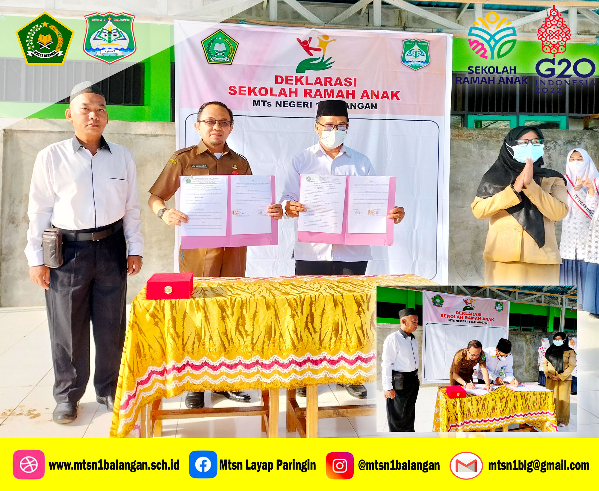 Pada deklarasi tersebut turut dilaksanakan penandatanganan nota kesepahaman (MoU) program SRA antara MTsN 1 Balangan dengan Dinas Sosial, P3A, PMD Kabupaten Balangan oleh masing-masing pimpinan.